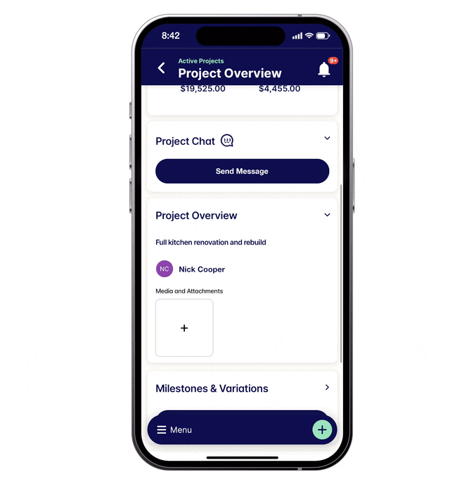 Witzer keeps every document, plan, contract, variation, and invoice stored in one easy-to-access place for you and your client.